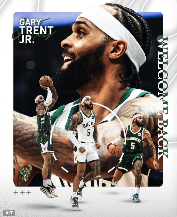 2年750万!雄鹿官宣签回小加里-特伦特:欢迎回归 GT