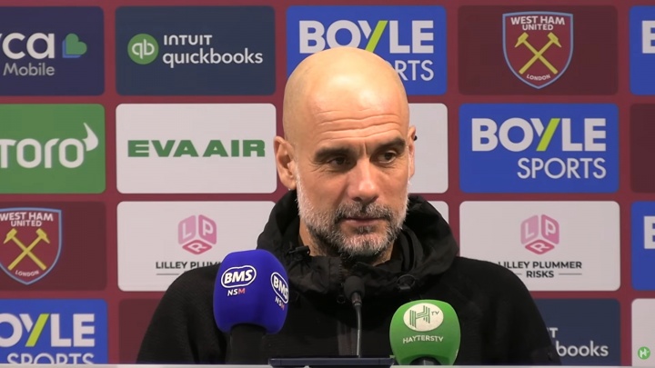 03月16日讯 英超第30轮,曼城客场1-1战平西汉姆联。赛后新闻发布会,记者提及下场比赛将是欧冠主场战皇马,首回合曼城0-3客负皇马。