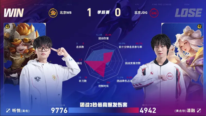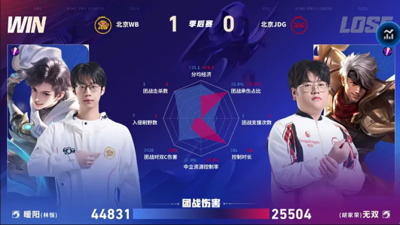 游戏规则模拟器-WB/JDG第一局数据图:暖阳元坦能抗能打