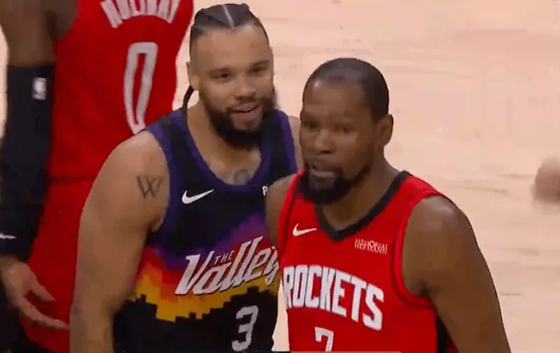 “这是火箭本赛季垃圾话场面最多的一场。这很合理:这是杰伦-格林首次对阵前东家,杜兰特首次以太阳队球员身份重返凤凰城,而狄龙-布鲁克斯…还是那个狄龙-布鲁克斯。目前比赛身体对抗非常激烈。